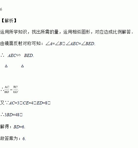 如图所示,是一个平面镜,光线从点射出经过上的点反射后照射到点,设入射角为(入射角等于反射角),,,垂足分别为点,.若,,,则________.