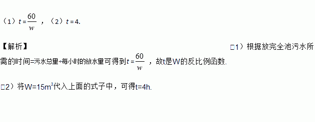 一水池内有污水60m3,设放净全池污水所需的时间为t (小时),每小时的放水量为wm3,