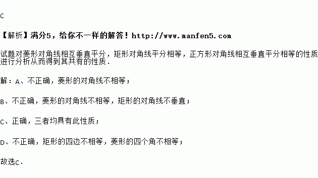 A. 对角线相等且互相平分 B. 对角线相等且互相垂直平分