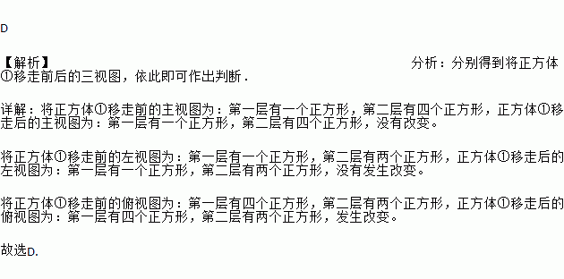 如图是由7个同样大小的正方体摆成的几何体.将正方体①移走后,所得几何体( )