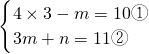 把m=2代入②得,6+n=11,