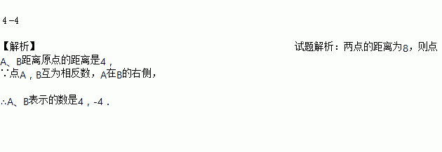 点A,B表示数轴上互为相反数的两个数,且点A向左平移8个单位长度到达点B,则这两点所表示的数分别是____________和___________.