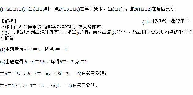 (2)当点B到x轴的距离是它到y轴距离的2倍时,求点B所在的象限.