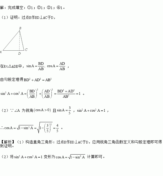 (1)如图,在锐角三角形ABC中,利用三角函数的定义及勾股定理对