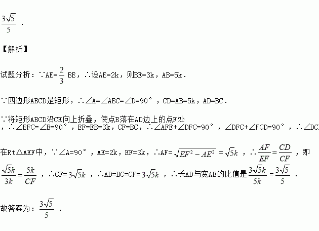 如图,将矩形ABCD沿CE向上折叠,使点B落在AD边上的点F处.若AE=BE,则长AD与宽AB的比值是 .