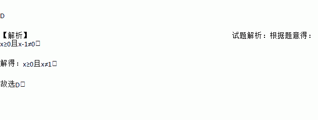 A. x≥0 B. x≠1 C. x>0 D. x≥0且x≠1