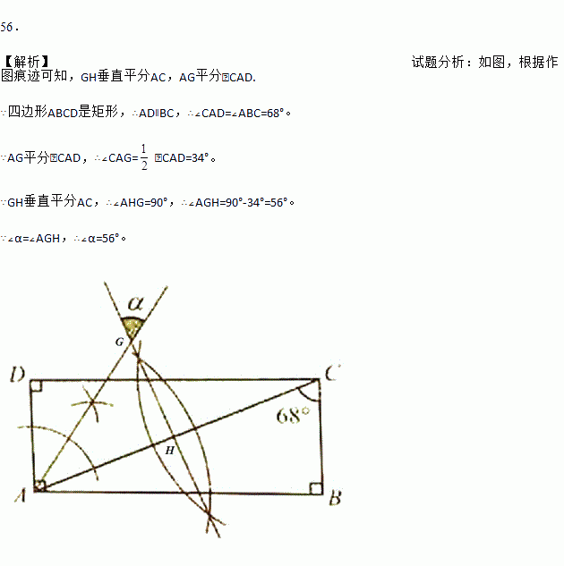 如图,依据尺规作图的痕迹,计算∠α=________°.