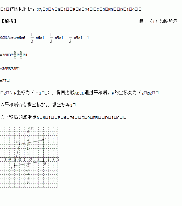 (2)若P为四边形ABCD形内一点,已知P坐标为(﹣1,1),将四边形ABCD通过平移后,P的坐标变为(2,﹣2),根据平移的规则,请直接写出四边形ABCD平移后的四个顶点的坐标.