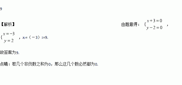 如果(x+3)2+|y﹣2|=0,则xy=_____.
