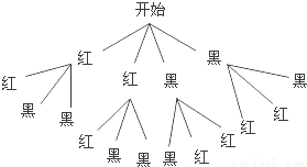 在一个不透明的口袋中装有红球2个、黑球2个,它们只有颜色不同,若从口袋中一次摸出两个球,求摸到两个都是红球的概率.(要求画出树状图)