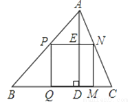 如图,△ABC是一块锐角三角形余料,边BC=120mm,高AD=80mm,要把它加工成正方形零件PQMN,使正方形PQMN的边QM在BC上,其余两个项点P,N分别在AB,AC上.求这个正方形零件PQMN面积S.
