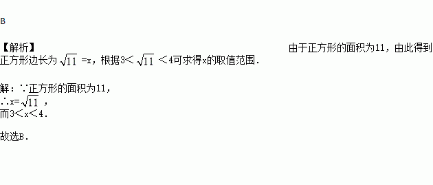 面积为11的正方形边长为x,则x的取值范围是( )