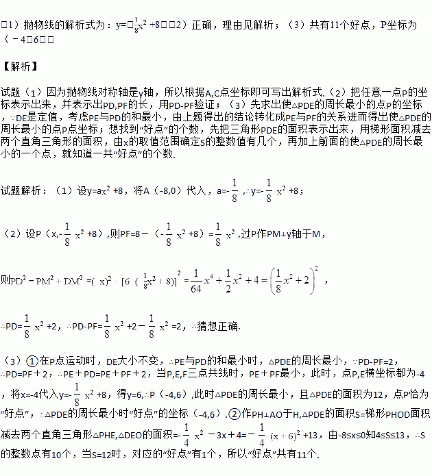 (3)小明进一步探究得出结论:若将“使△PDE的面积为整数”的点P记作“好点”,则存在多个“好点”,且使△PDE的周长最小的点P也是一个“好点”.请求出△PDE周长最小时“好点”的坐标,并直接写出所有“好点”的个数.