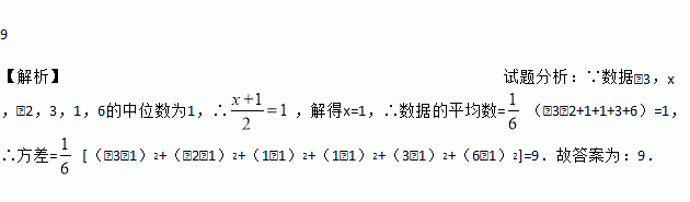 已知一组数据﹣3,x,﹣2,3,1,6的中位数为1,则其方差为 .