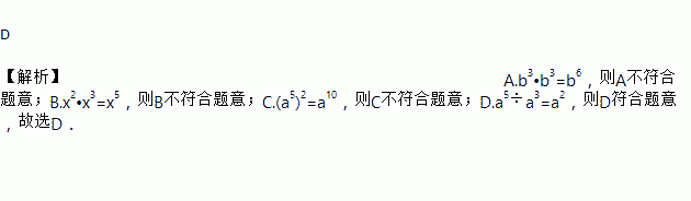 A. b3•b3=2b3 B. x2•x3=x6 C. (a5)2=a7 D. a5÷a2=a3