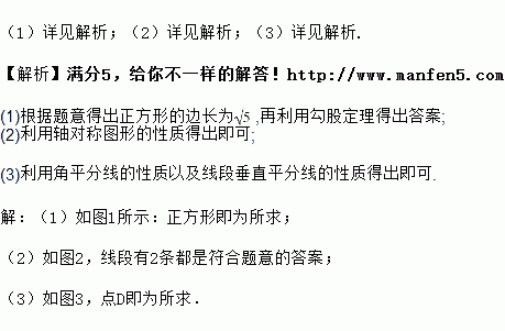 (3)在图3中,找一格点D,满足:①到CB、CA的距离相等;②到点A、C的距离相等.