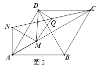 (2)如图2,M为线段AC上一点(不与A、C重合),以AM为边向上构造等边三角形AMN,连接NC、DM,Q为线段NC的中点,连接DQ、MQ,判断DM与DQ的数量关系,并证明你的结论.