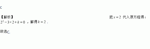 如果2是方程的一个根,则常数k的值为( )