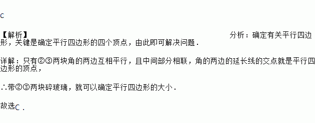 小敏不慎将一块平行四边形玻璃打碎成如图的四块,为了能在商店配到一块与原来相同的平行四边形玻璃,他带了两块碎玻璃,其编号应该是( )