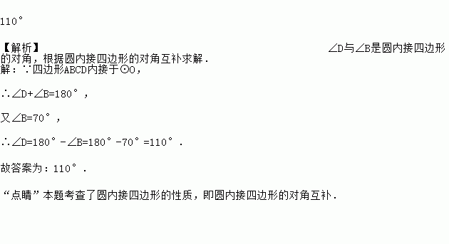 如图,四边形 ABCD的顶点均在⊙O上,∠A=70°,则∠C=___________°.
