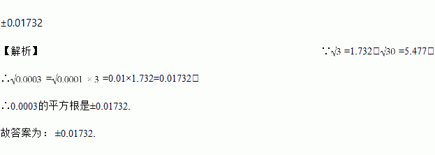 如果=1.732, =5.477,那么0.0003的平方根是_________.