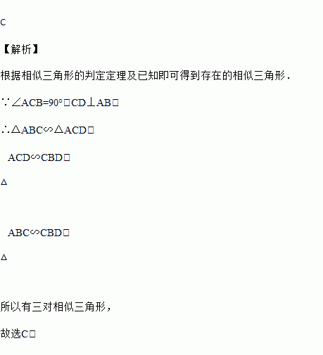 如图,在中,,是斜边上的高,则图中相似三角形有( )