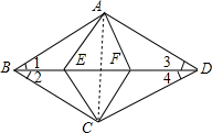 分析:图中共有5对全等三角形,分别为△ADF≌△CDF,△ADF≌△CDF,△AED≌△CED,△ABF≌△CBF,△ABD≌△CBD.