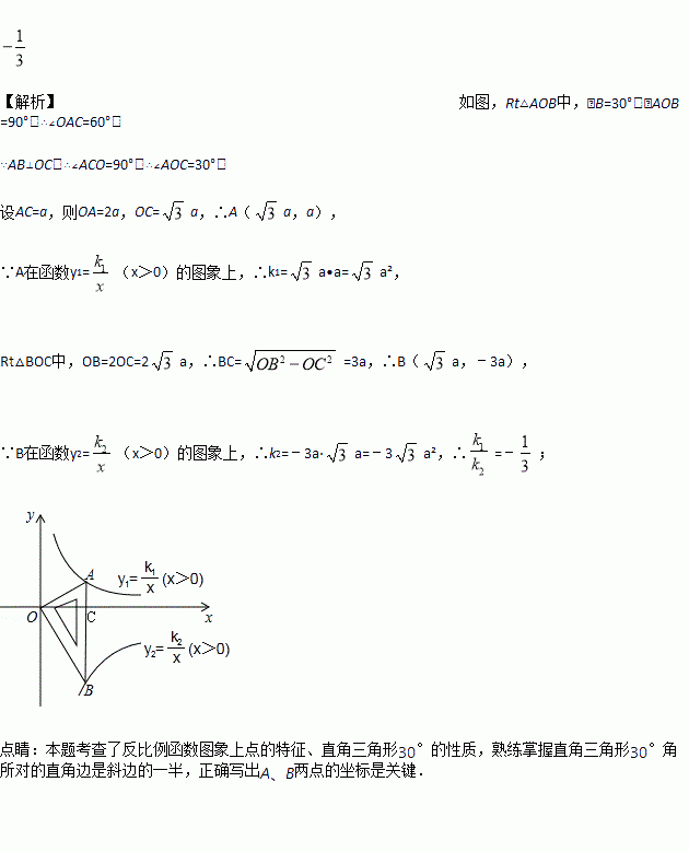 如图所示是一块含30°,60°,90°的直角三角板,直角顶点O位于坐标原点,斜边AB垂直于x轴,顶点A在函数y1=