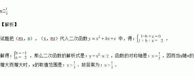 如图,已知二次函数y=x2+bx+c的图象经过点(﹣1,0),(1,﹣2),当y随x的增大而增大时,x的取值范围是 .
