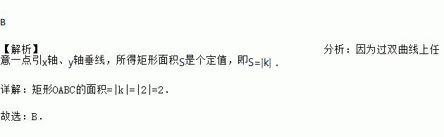 如图,点B是反比例函数y=(x>0)的图象上任意一点,过点B分别向x轴、y轴作垂线,垂足分别为点A和点C,则矩形OABC的面积为( )