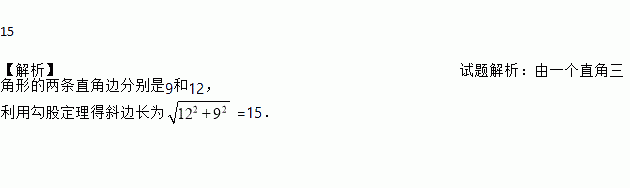 直角三角形的两条直角边分别是9和12,则斜边是___________