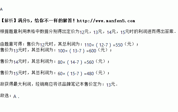 为获得最大利润,经销商应将该品牌笔记本售价定为( )(单位:元/本)