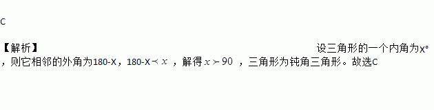三角形的一个外角小于与它相邻的内角,则这个三角形是( )