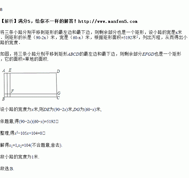 如图,在一条长米,宽米的矩形草地上修三条小路,小路都等宽,除小路外,草地面积为米2的个矩形小块,则小路的宽度应为( )