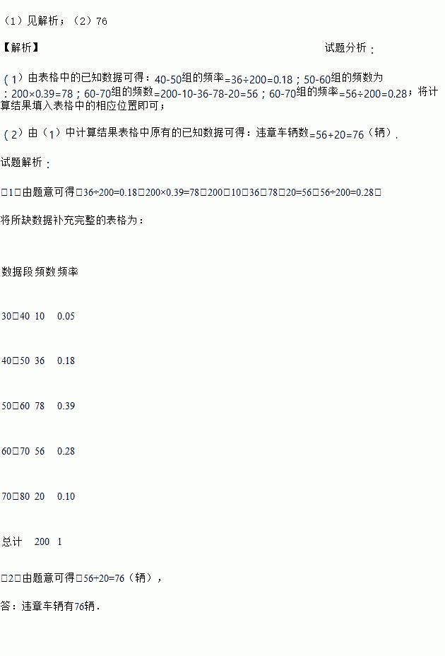 (2)如果汽车时速不低于60千米即为违章,则违章车辆共有多少辆?