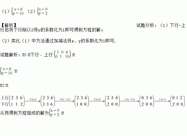 )中数表的书写格式写出解方程组![]()