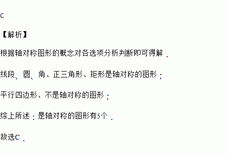 在线段、圆、角、正三角形、平行四边形、矩形中,是轴对称的图形有( )