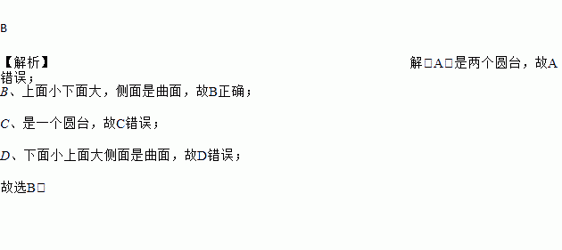 将下列平面图形绕轴旋转一周,可得到图中所示的立体图形是( )