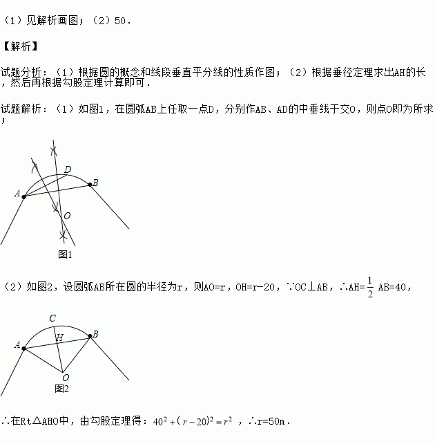(1)用直尺和圆规作出弧AB所在圆的圆心O;(要求保留作图痕迹,不写作法)