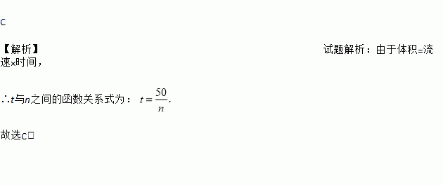已知水池的容量为50米3,每时灌水量为n米3,灌满水所需时间为t(时),那么t与n之间的函数关系式是( )