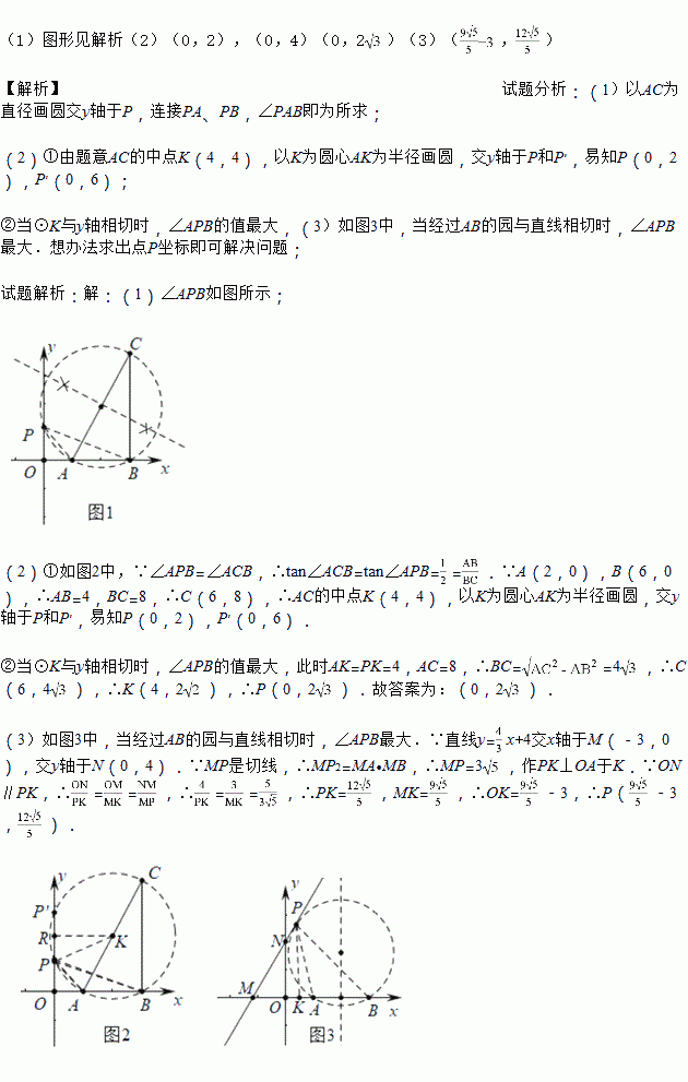 (1)在y正半轴上求作点P,使得∠APB=∠ACB(尺规作图,保留作图痕迹)