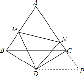 ∴∠MDB+∠NDC=∠PDC+∠NDC=∠BDC-∠MDN=60°即∠MDN=∠PDN=60°