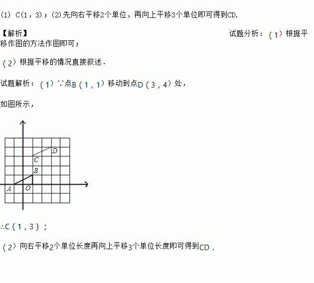如图,已知A(-1,0),B(1,1),把线段AB平移,使点B移动到点D(3,4)处,这时点A移动到点C处.