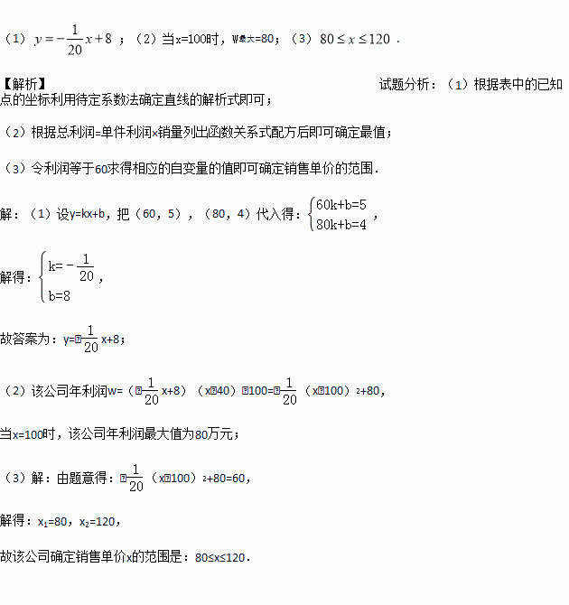 (3)若公司希望年利润不低于60万元,请你帮助该公司确定销售单价的范围.