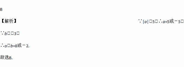 B 【解析】∵|a|=5,∴a=5或-5, ∵b=-3, ∴a-b=8或-2. 故选B.