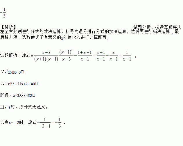 先化简,再求值: ,其中x是值是方程x2﹣x﹣6=0的根.