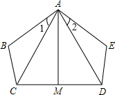 分析:根据AB=AE,BC=DE,∠B=∠E,利用SAS可证△ABC≌△AED,那么∠1=∠2,AC=AD,可知△ACD是等腰三角形,而AM平分∠BAE,可得∠BAM=∠EAM,利用等式性质易得∠CAM=∠DAM,即AM平分∠CAD,再利用等腰三角形三线合一定理可证CM=DM,即M是CD中点.