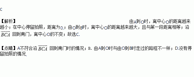 世界文化遗产“华安二宜楼”是一座圆形的土楼,如图,小王从南门点A沿AO匀速直达土楼中心古井点O处,停留拍照后,从点O沿OB也匀速走到点B,紧接着沿