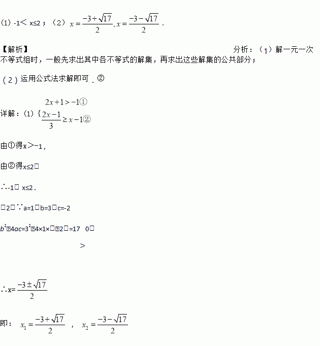 (1)解不等式组: ; (2)解方程:x2+3x﹣2=0 .