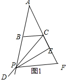 解答 解:如图1:过点P作PF∥BC,交AC的延长线于点F,![]()